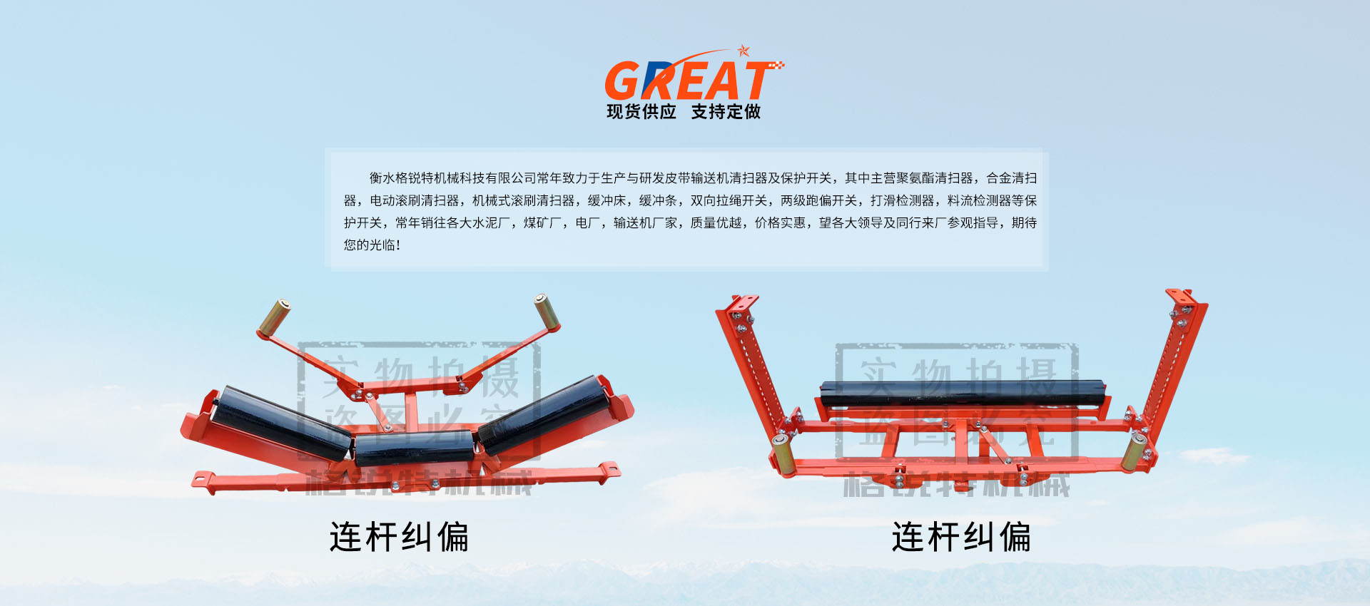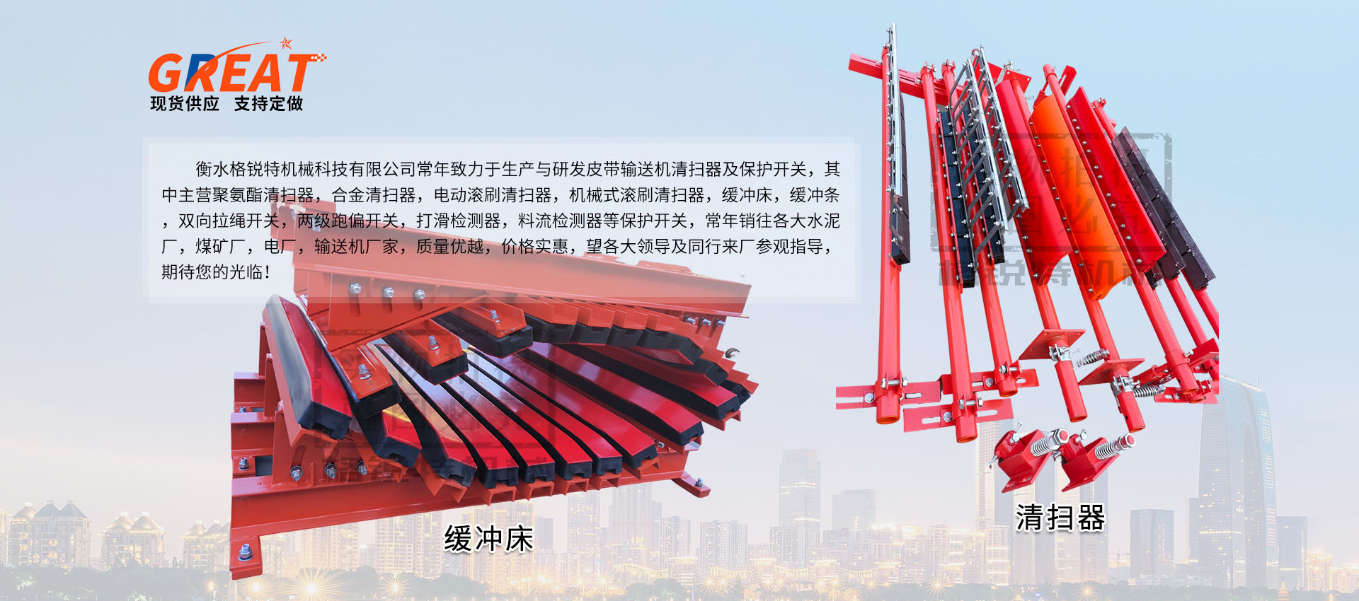 衡水格銳特機(jī)械科技有限公司常年致力于生產(chǎn)與研發(fā)皮帶輸送機(jī)清掃器及保護(hù)開關(guān),其中主營(yíng)聚氨酯清掃器,合金清掃器,電動(dòng)滾刷清掃器,機(jī)械式滾刷清掃器,緩沖床,緩沖條,雙向拉繩開關(guān),兩級(jí)跑偏開關(guān),打滑檢測(cè)器,料流檢測(cè)器等保護(hù)開關(guān),常年銷往各大水泥廠,煤礦廠,電廠,輸送機(jī)廠家,質(zhì)量?jī)?yōu)越,價(jià)格實(shí)惠,望各大領(lǐng)導(dǎo)及同行來(lái)廠參觀指導(dǎo),期待您的光臨?。。?/p>